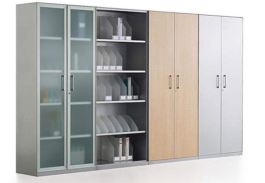 Armoire de bureau design avec structure métal peint époxy Blanc ou Argent, épaisseur 8/10.