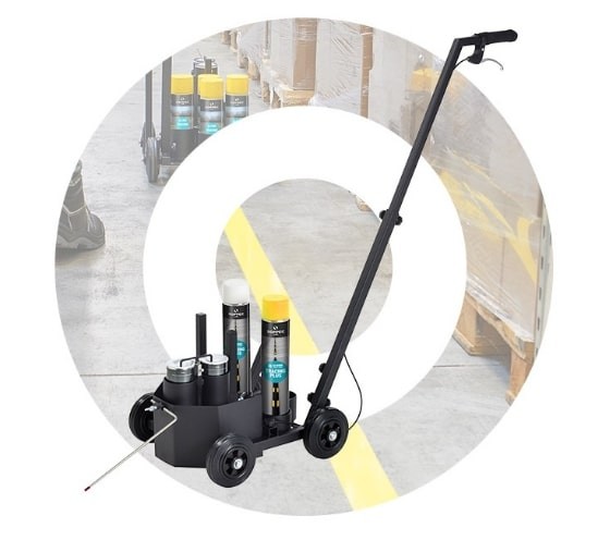 Le chariot de traçage est spécifiquement conçu pour la gamme de traceurs de ligne. Il est compatible avec un type de bombe de peinture spécifique.
