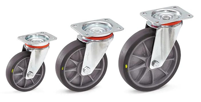 Armature en tôle d'acier galvanisée Diamètre roue : Ø 125, 160 ou 200 mm Roue à bandage TPE-ESD Sans frein