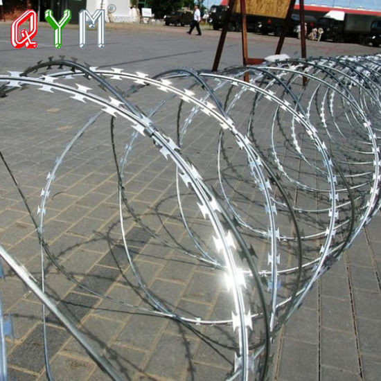 Fil barbelé concertina ronce appelé fil de fer barbelé américain est un rouleau défensif est produit dangereux du a sa coupure et ses lames tranchantes.