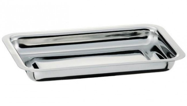 Plat pour vitrine réfrigérée , ravier en inox 18 %, 17 x 11 cm, H 1,9 cm, volume 0,25 L.