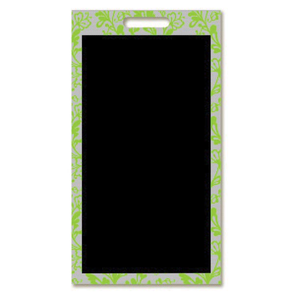 Cette ardoise menu recto/verso avec poignée dispose d'un décors du contour en transparence.