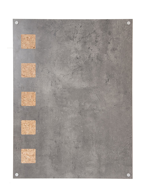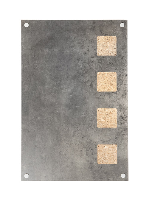 pièces en liège intégrées et bordures en métal.
