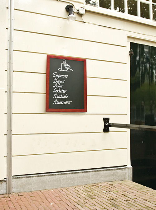 Avec son cadre en bois dur laqué et sa surface d’écriture double-face, elle s’adapte parfaitement aux restaurants, cafés, hôtels et bars qui souhaitent mettre en valeur leur communication visuelle.