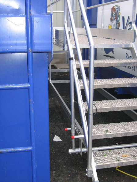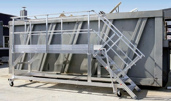 Nous aurions besoin d"un prix accompagné de la fiche technique pour 1 passerelle d"accès benne en acier ou aluminium, équipée de roulettes, avec marches, lices et garde corps de sécurité. Elle sera utilisée au sein d"une déchèterie afin de facilité le bâchage des bennes.