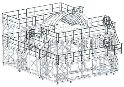 Cette passerelle fabriquée sur mesure assure la mise en sécurité des personnes et offrent une grande surface d'accès adaptée à l'évolution du chantier