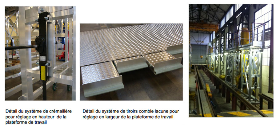 Elle dispose du système de tiroirs comble lacune en vue d’assurer une sécurité optimale et ainsi d'éviter la chute des opérateurs.