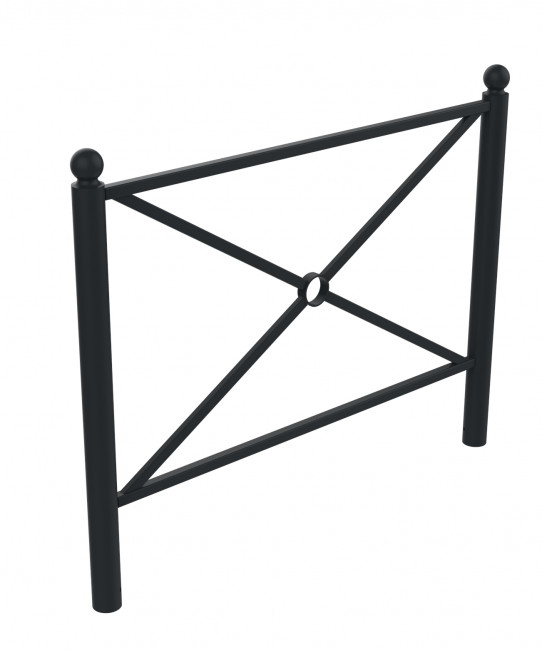 L’habillage en croix de Saint‑André et la tête boule confèrent à cette barrière de trottoir acier une esthétique immédiatement reconnaissable.