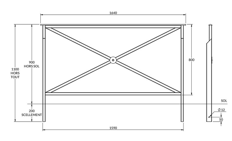 - Scellement : 200 mm