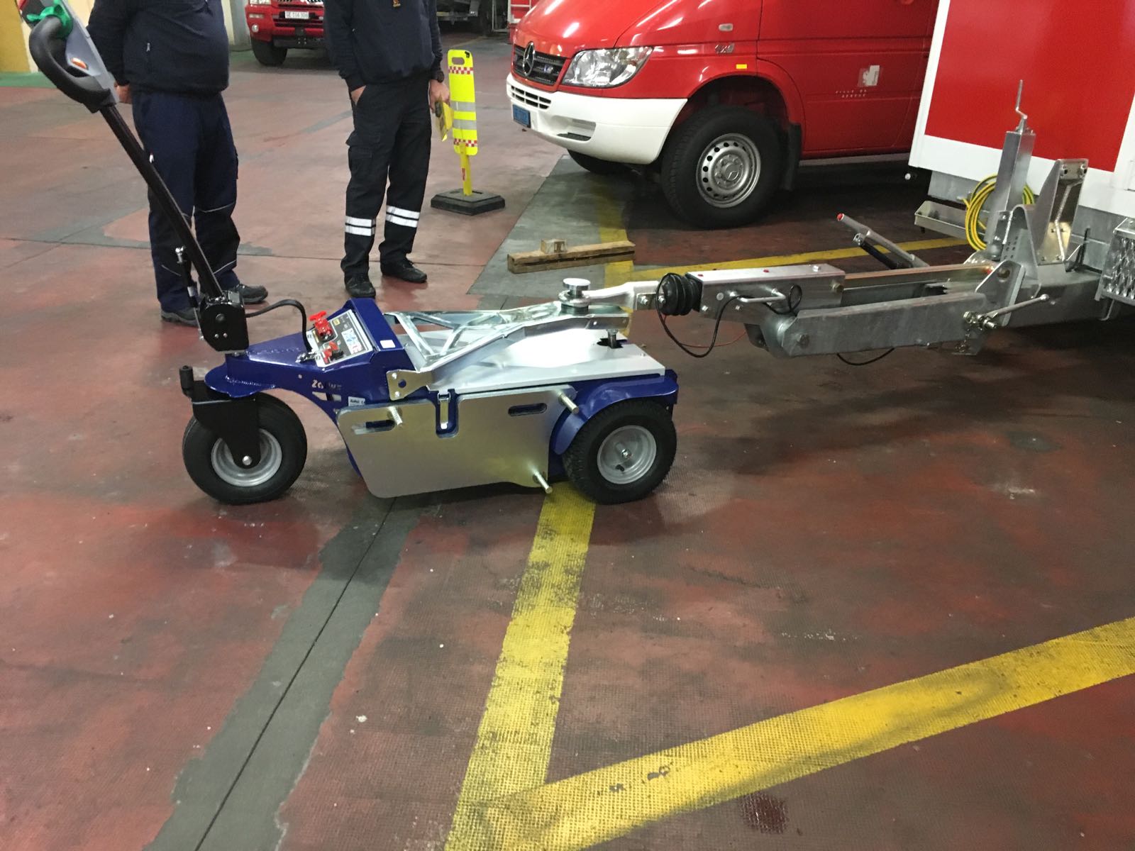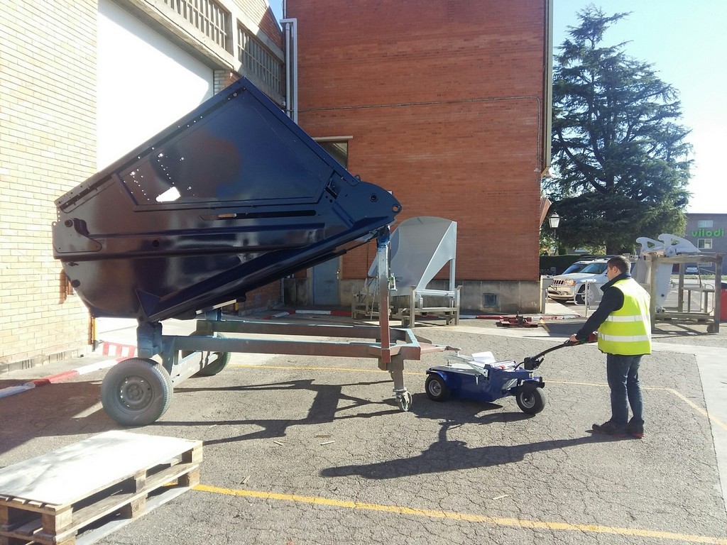 Par la position de son châssis, plus basse et plus longue, il est possible de lui installer un vérin électrique permettant la traction de charges équipes deux roues uniquement d’un côté comme les charriots à chandelles.