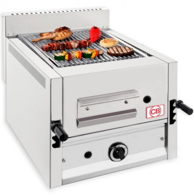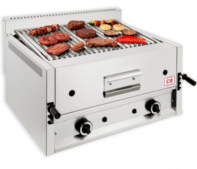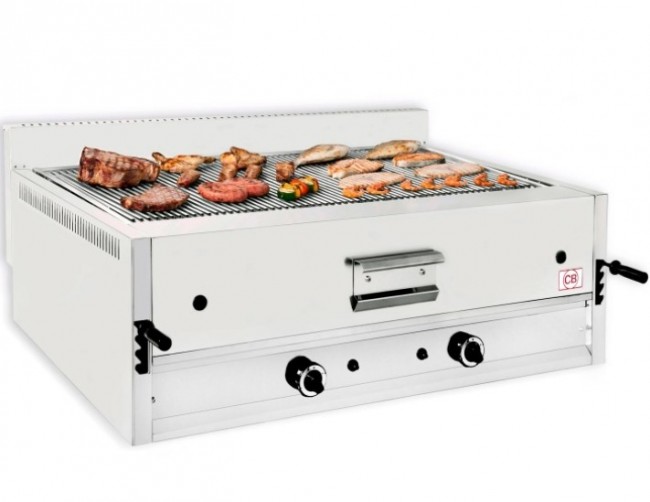 Cette grillade pierres de lave à gaz avec grille à barreaux est chauffée par des brûleurs à gaz de forte puissance .