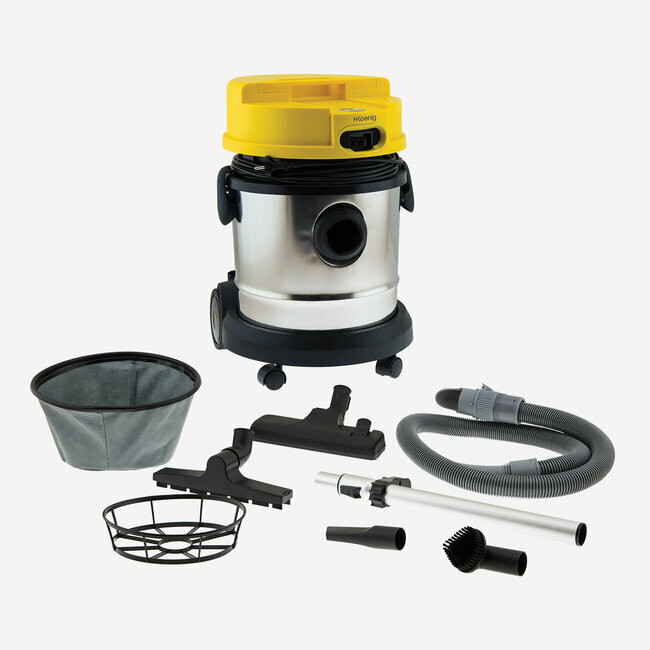 Découvrez un aspirateur cuve en acier de 20 litres, sans sac, doté d'une puissance impressionnante de 1200 watts.