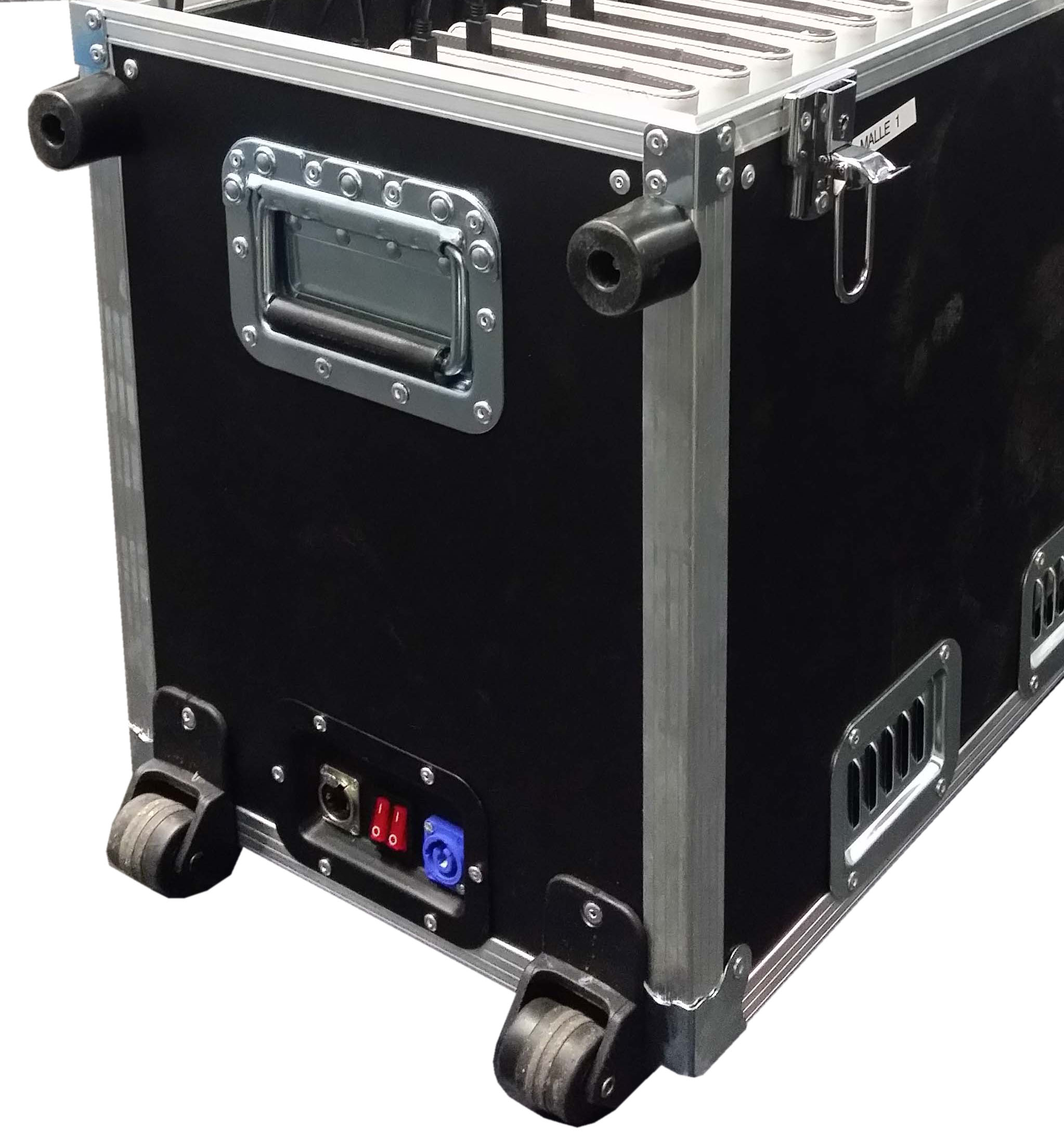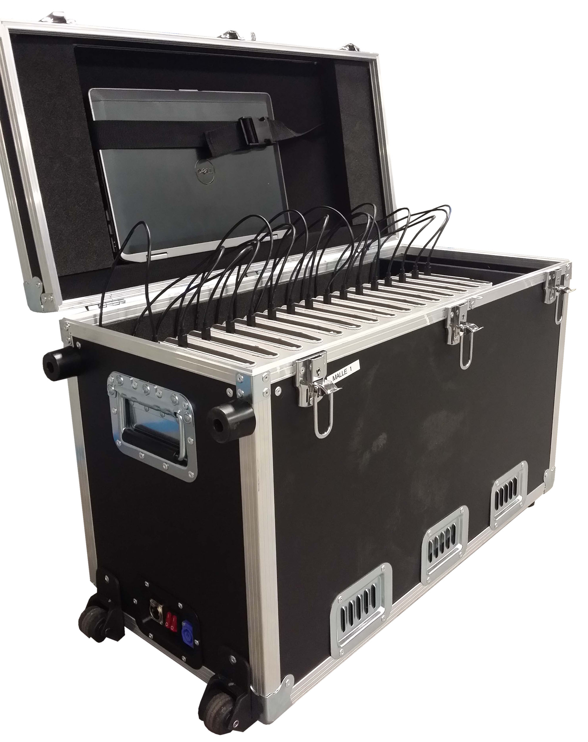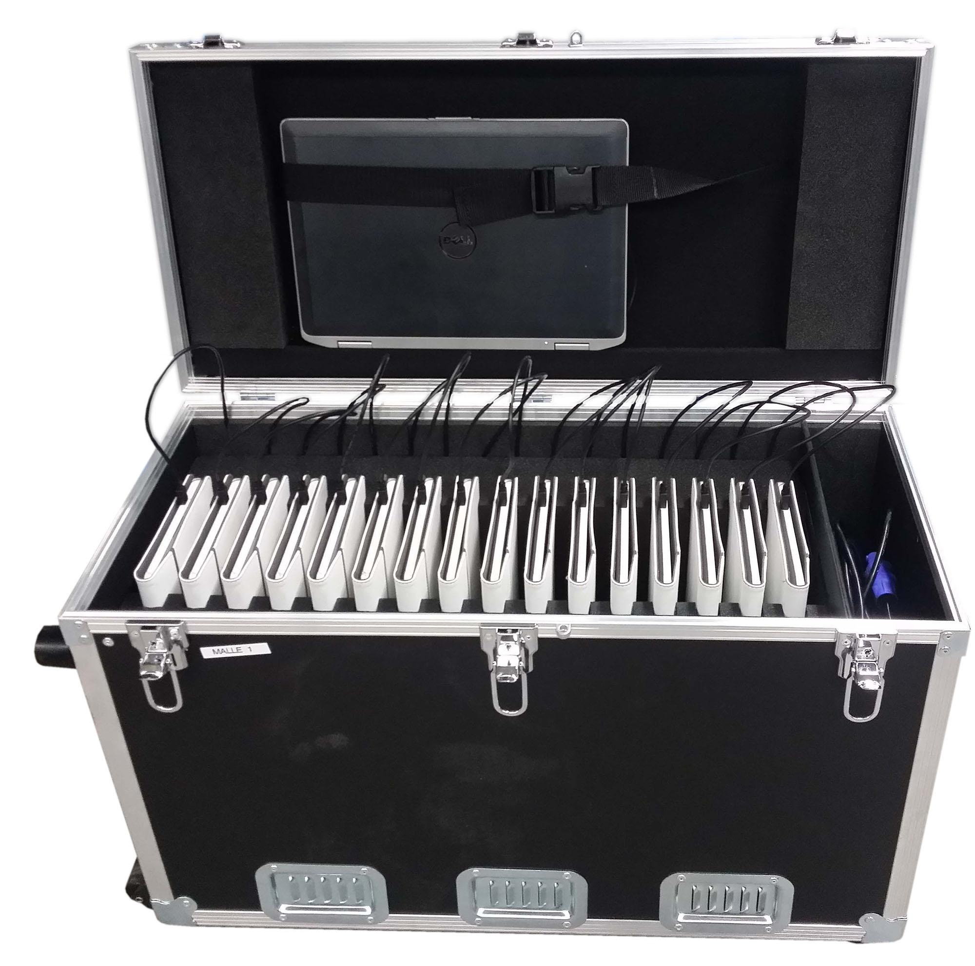 Cette valise multimédia est dotée de modules en mousse haute densité, offrant une protection optimale pour chaque tablette pendant son transport. Elle permet un rangement organisé et sécurisé, avec des compartiments dédiés pour éviter tout contact direct entre les appareils. De plus, elle est équipée de protection contre les surtensions, garantissant la sécurité des tablettes et autres équipements lors du chargement.