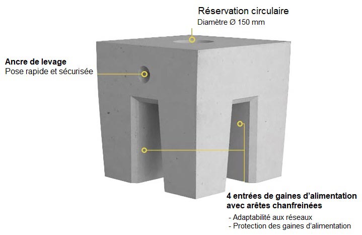 Ce bloc massif béton est disponible en 3 formats pour répondre aux différentes tailles de bornes du marché.