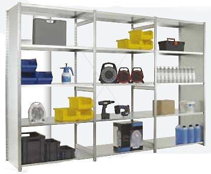 D'une grande modularité, ce rayonnage industriel permet de rajouter ou d'enlever des tablettes en fonction du besoin.