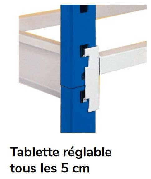5 tablettes = 5 niveaux pour boites d’archives ou stockage.