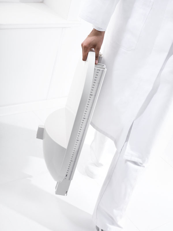 Le stadiomètre pèse seulement 2.4 kg et convient de ce fait parfaitement à une utilisation mobile, par exemple pour mesurer la taille d'enfants ou de jeunes lors d'examens médicaux scolaires.