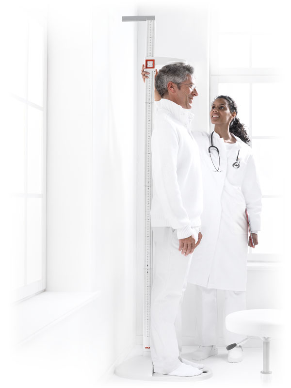 Les cadrans fixés sur les côtés de la toise permettent la lecture même pendant la prise de mesure et garantissent ainsi un résultat très précis de la taille jusqu'à 205 cm.