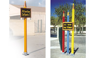 Fixation au sol : par embase métallique galvanisée et tige d'ancrage à sceller.