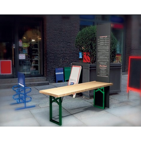 Ce banc avec assise en bois vernis est destiné aux restaurants, cafés, bars, etc.