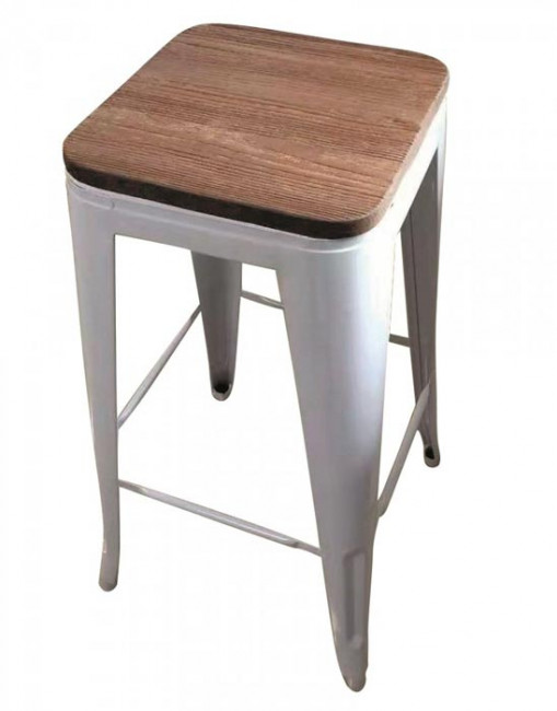 | Réf. TC :652298945 | Tabouret métallique industriel empilable | 75 | 43 x 43 | 31 x 31 | Blanc avec assise bois clair | 4.5 | Lot de 5 | -