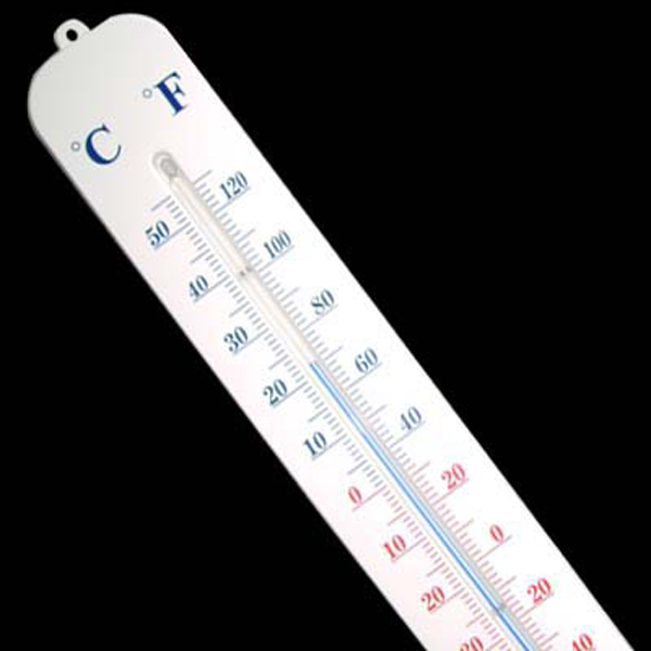 Ayant 400 mm de hauteur, ce robuste thermomètre est fabriqué en plastique assurant sa solidité et sa durabilité.