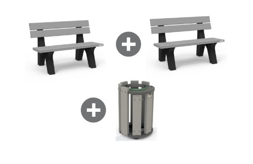Pack 2 bancs publics et corbeille