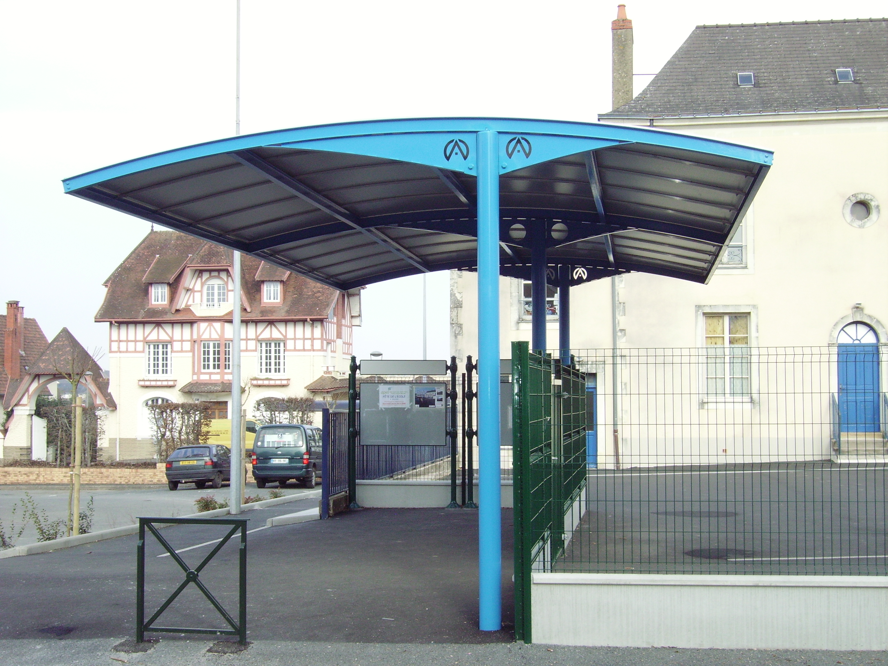 26/01/2016préau d"entrée d"école pouvant d"un côté (extérieur) abriter les parents et de l"autre les vélos des enfants côté (intérieur) en stationnement