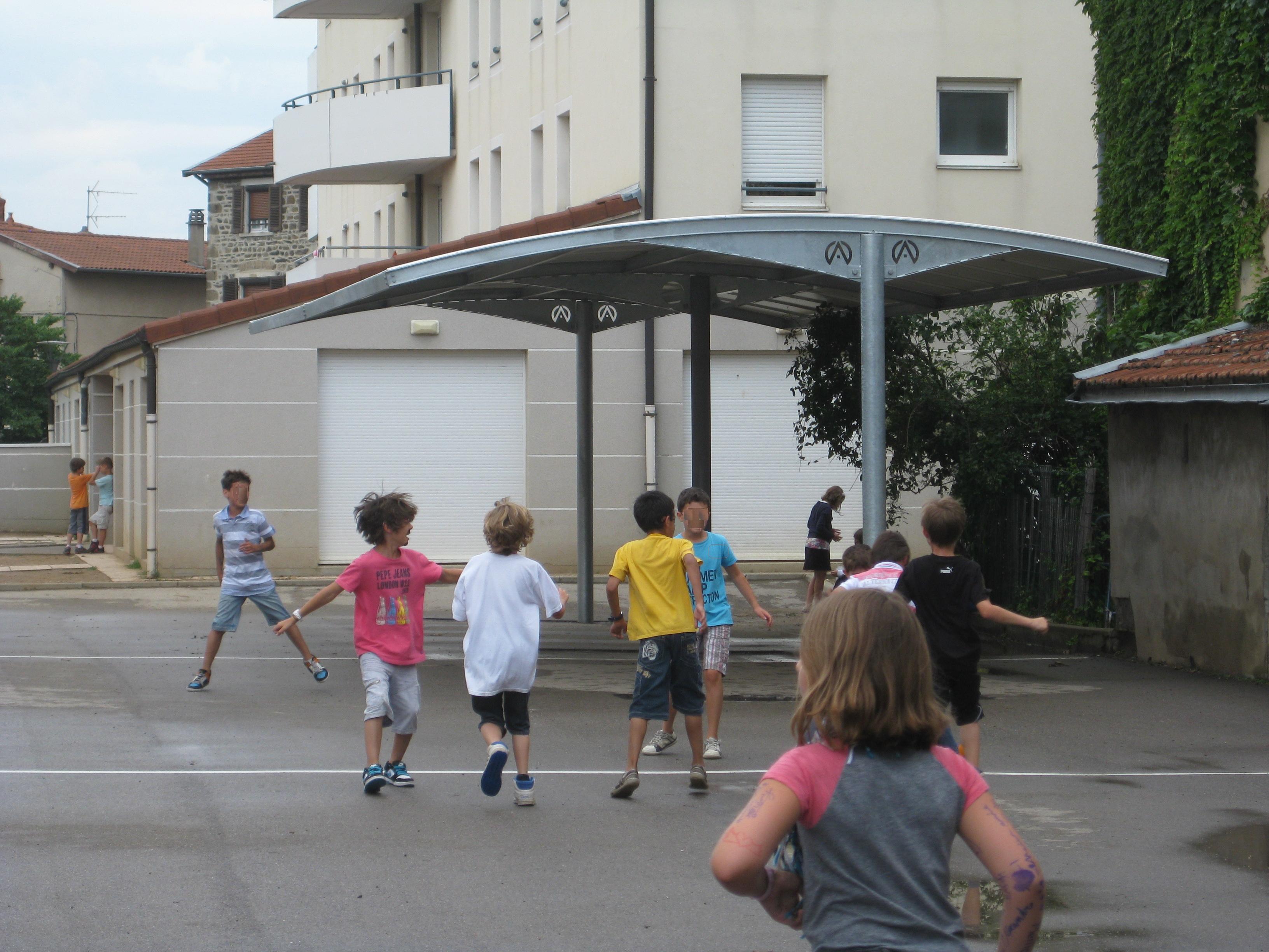 Nous souhaitons installer rapidement dans une cour d"école un préau pouvant abriter environ 80 enfants.
