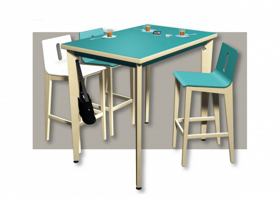Ce tabouret haut en bois est conçu pour la restauration d'entreprise et scolaire.