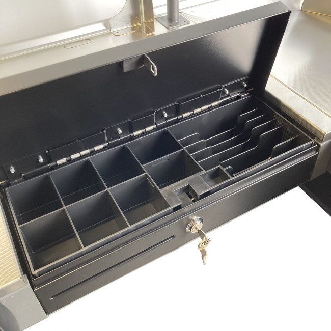 04/09/2024Caisse de sortie 1700 premium avec un bac arrière située à gauche.