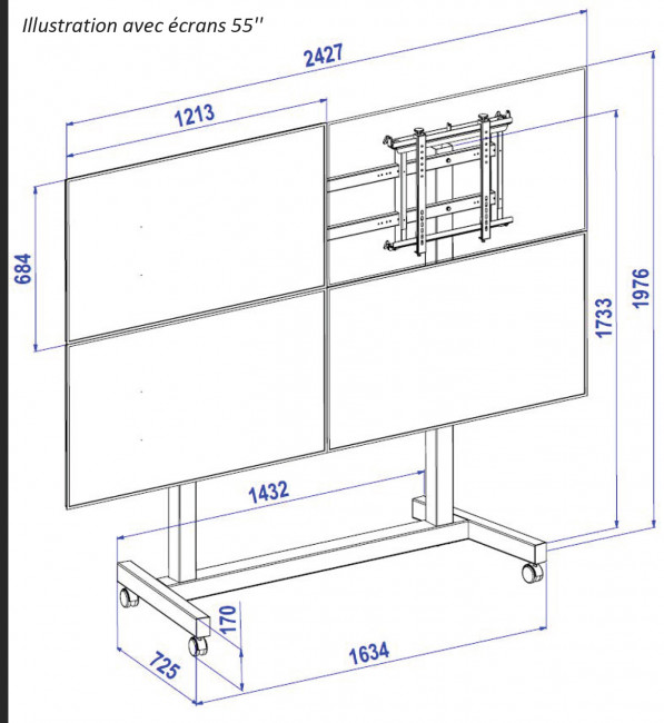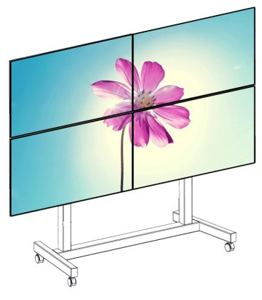 Ce pied à roulettes, dont la référence SOL2X2-H, permet de fixer jusqu'à 4 moniteurs pouvant mesurer de 46" à 55".