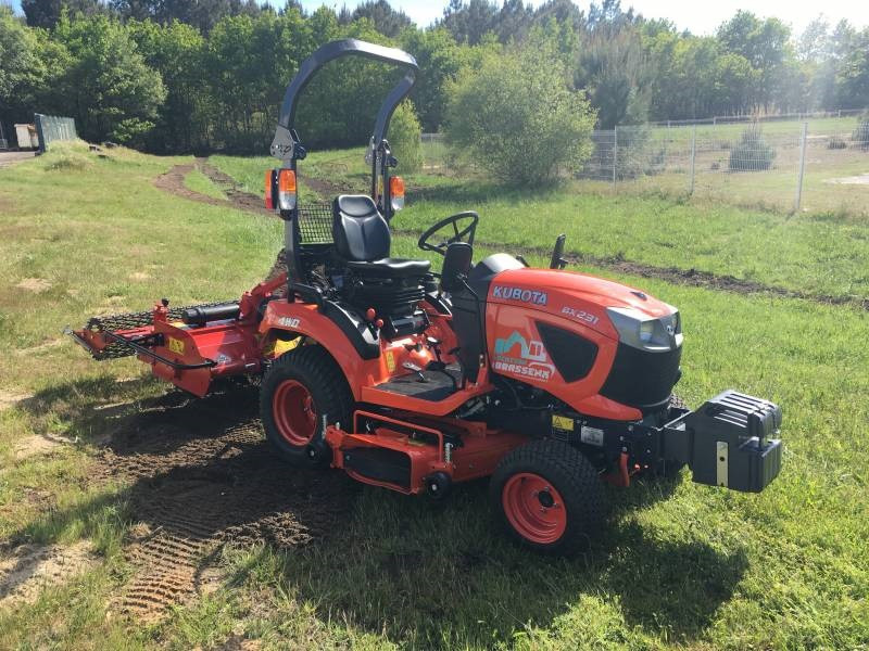 La machine aide à fraiser, enfouir des pierres, détritus ou herbes, niveler, malaxer et rouler le sol.