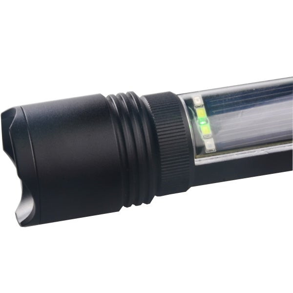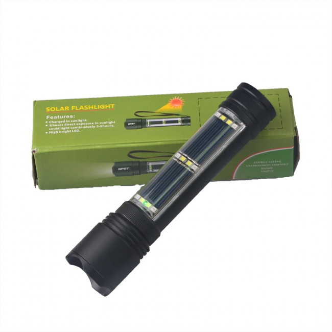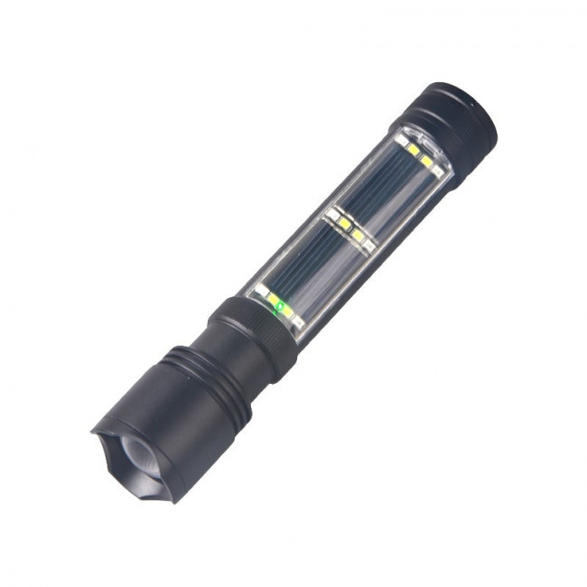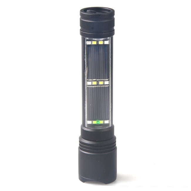 Cette petite torche solaire propose 4 modes d’éclairage solaire interchangeables par un simple clic : pleine luminosité, éclairage latérale (blanc), stroboscope et clignotement de lumière bleue et rouge. La source de l’éclairage est de couleur blanc froid 6000k. Ce produit LED est doté d’un revêtement en alliage d’aluminium, solide et agréable au toucher. Très utile à la maison, dans la voiture, en camping, en promenade, … Profitez d’un éclairage solaire autonome partout où vous allez.