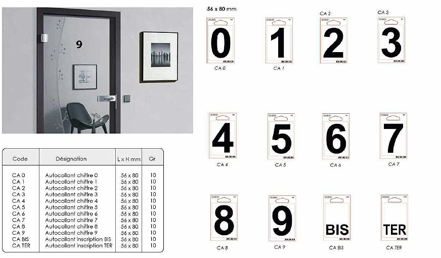 Ces chiffres autocollants adhesifs sont idéals pour la numérotation d'intérieur.