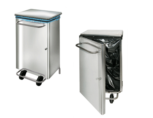 Équipé de 2 roulettes à l’arrière avec un système d’ouverture par pédale chose qui vous permet de changer le sac facilement.