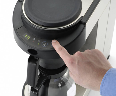 En une simple pression de doigt sur la touche en façade de la machine à café et la production, démarre.
