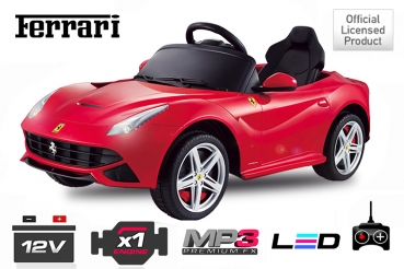 Voiture électrique enfant Ferrari F12, une véritable réplique du luxe accessible à tous les enfants ! Pour rendre jaloux papa et maman. Ecoutez de la musique grâce à la connexion MP3.