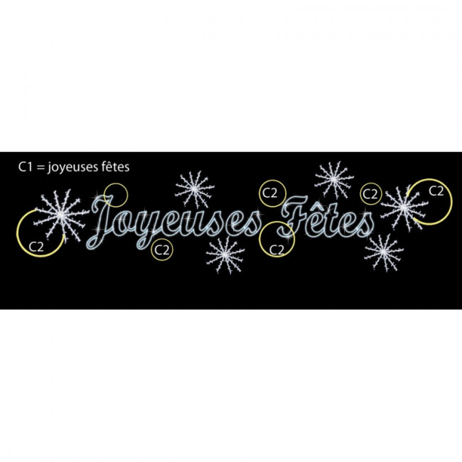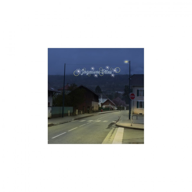 Cette traversée de rue est composée de cordon lumineux en LED et de lucioles LED. (Cordon et lucioles LED fixes uniquement). Si vous souhaitez un effet pétillant prendre la traversée "Joyeuses Fêtes Artifices"