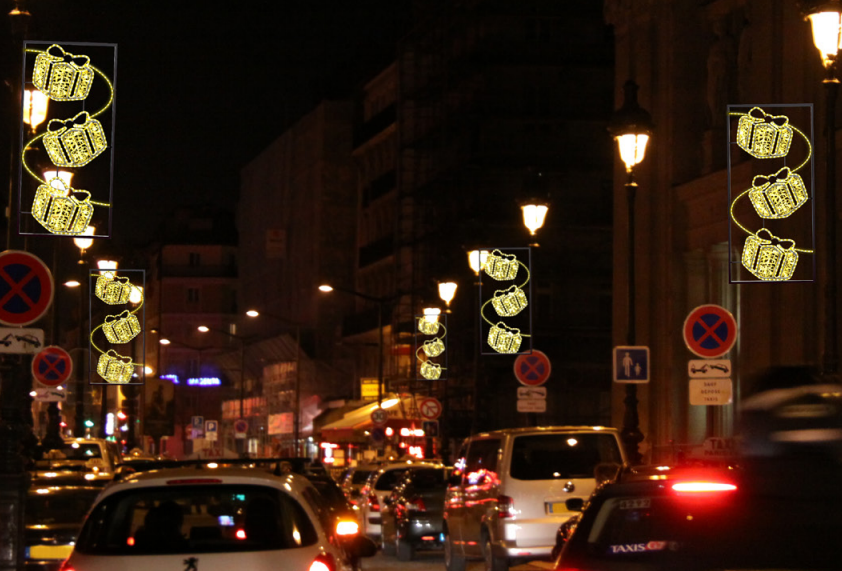 Notre panneau lumineux décoration motif cadeaux est pensé pour répondre aux exigences élevées des installations urbaines, avec ses deux formats de 75×300 cm et 155×75 cm, permettant une intégration harmonieuse sur tous types de façades, traversées de rue ou espaces événementiels.