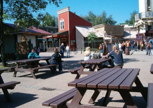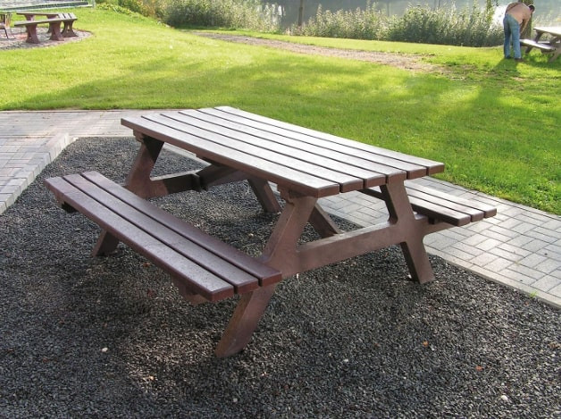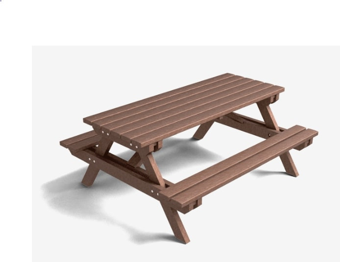 Cette table pique nique en plastique recyclé est un mobilier d’extérieur idéal pour les espaces verts.
