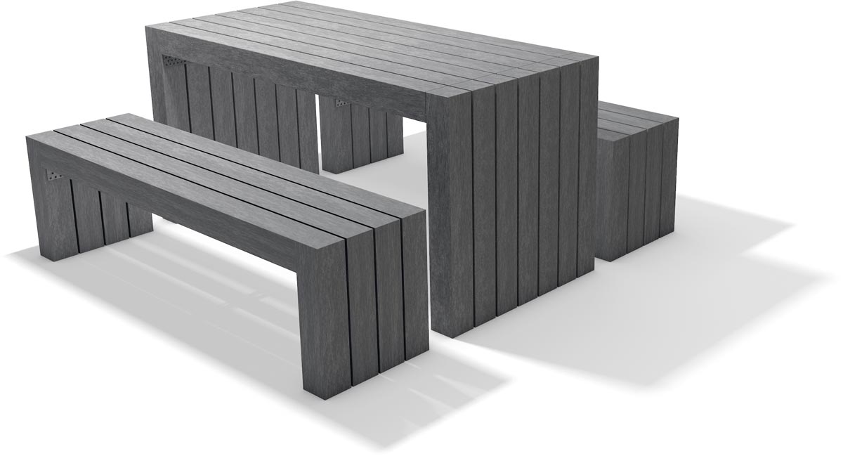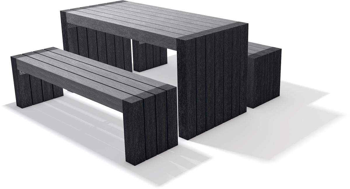 Il est fabriqué en plastique recyclé, adapté pour un usage externe et résistant à l’usure.