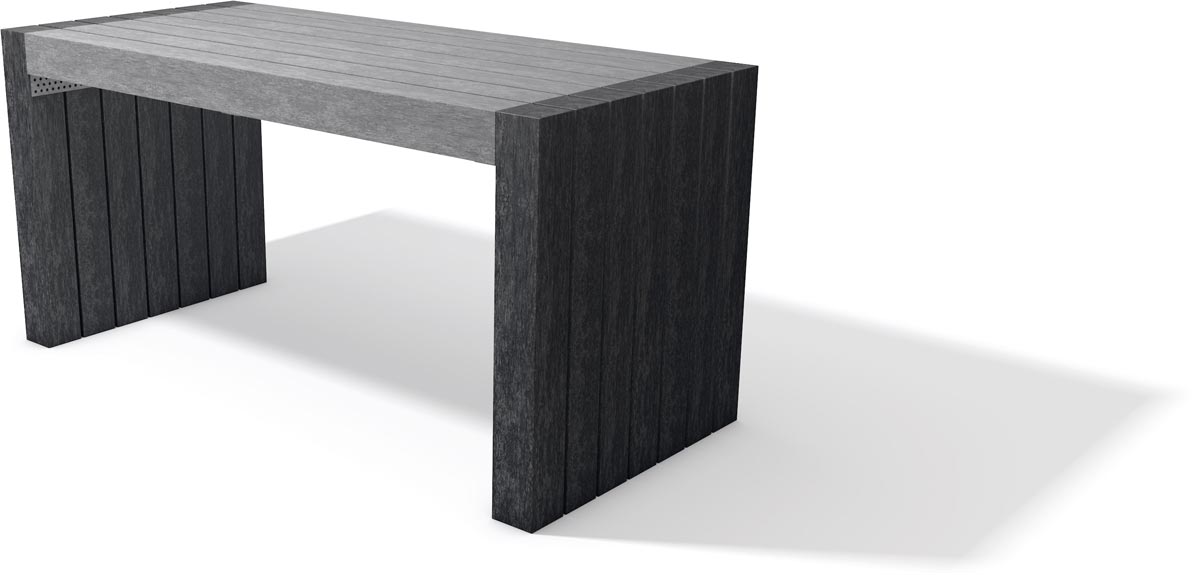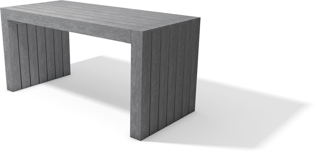 Il est également possible de compléter ce mobilier urbain par un banc sans dossier pour créer un salon de jardin complet.