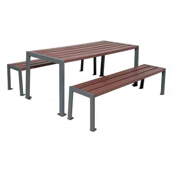 Ensemble pique-nique Silaos® en acier et plastique recyclé (table + 2 banquettes)