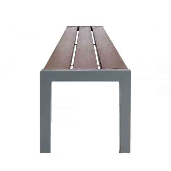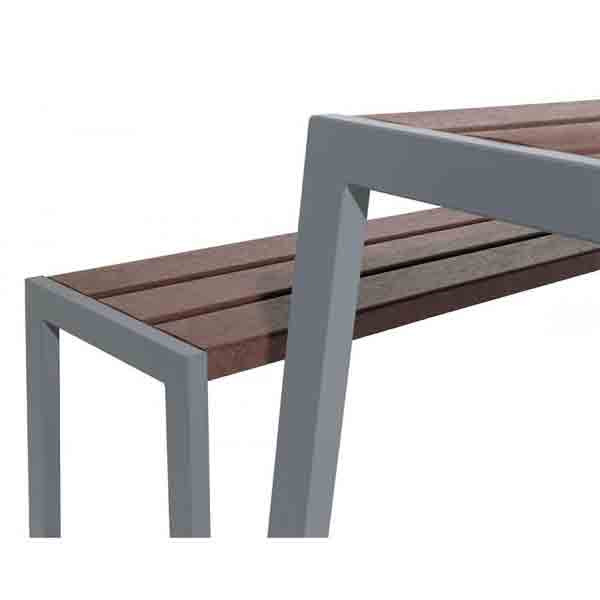 Constitué d’une structure en tube d’acier et de lames en plastique recyclé, cet ensemble table et banquettes est fixé sur platine et ne nécessite aucun entretien.
