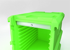 Ce bac isotherme à ouverture frontale maintient la température de vos produits alimentaires durant leur transport sans risque de basculement.