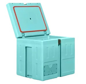 - Caisse et couvercle en polyéthylène rotomoulé monobloc. Isothermie par mousse de polyuréthane expansée