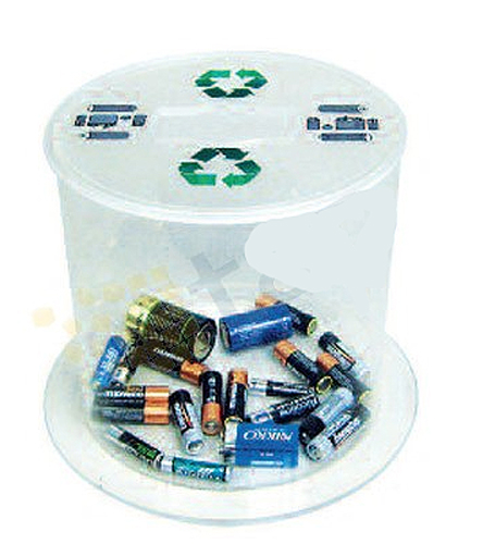 - Bornes de collecte - Pour la collecte de piles et de cartouches usagées. - Collecteurs en acrylique avec une large ouverture sur le couvercle. - Le type de collecte, piles ou cartouches, est indiqué sur le couvercle. - Tube en plastique transparent permet de visualiser le niveau de remplissage. - Fond garni de mousse PVC pour amortir la chute et insonoriser la collecte. (C) - Couvercle amovible. - Stabilité parfaite.