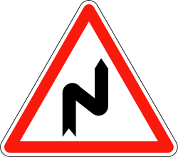 Ce panneau de signalisation routière type A1c indique à l'automobiliste une succession de virage dont le premier est à droite.