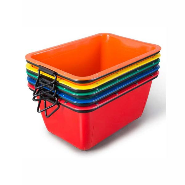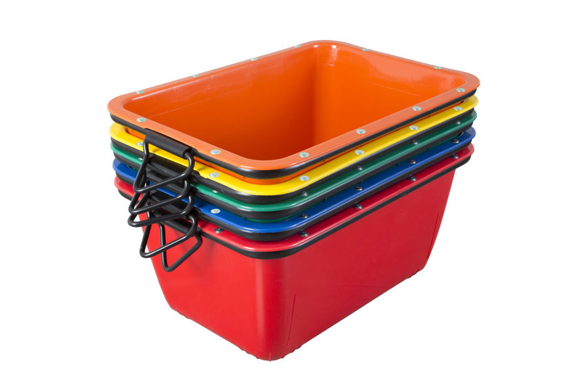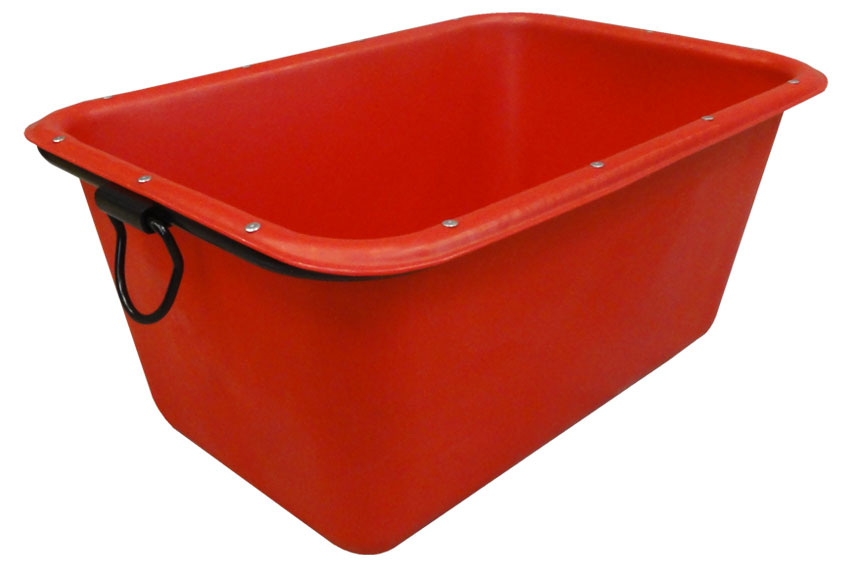 Ce bac à mortier en polyéthylène est disponible en plusieurs coloris : bleu, orange, jaune, rouge et vert.